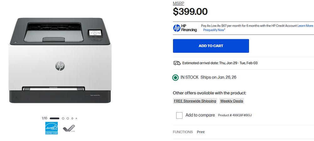 | Brother HL-L3220CDW | Color Laser | Print only | $285 |